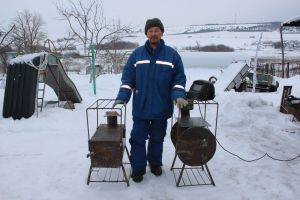 Туган як җылысы: Карман авылыннан Әсгать абый хәрбиләргә буржуйка-мичләр ясый