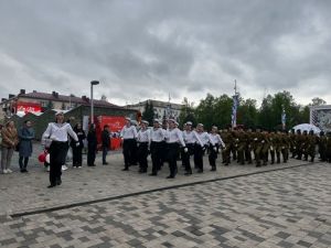 Бәйрәм кунаклары алдында строй һәм җыр смотры конкурсында җиңүчеләр һәм призерлар чыгыш ясады.