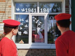 Бу көннәрдә йортлар, учрежденияләр тәрәзәләрендә күпләп Бөек Җиңүгә багышланган наклейкалар барлыкка килде.