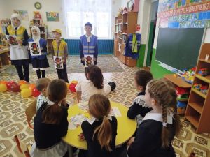 Зәй районы Чыбыклы мәктәбенең яшь юл хәрәкәте инспекторлары үзләре шефлыкка алынган балалар бакчасында тәрбияләнүчеләр белән юлда йөрү кагыйдәләрен искә төшерделәр.