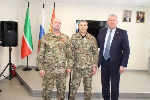 Бүген район башлыгы Разиф Кәримов махсус хәрби операция зонасыннан ялга кайткан егетләр белән очрашты.